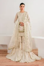 Embroidered organza front , back , sleeves & trouser border (10 yard)
